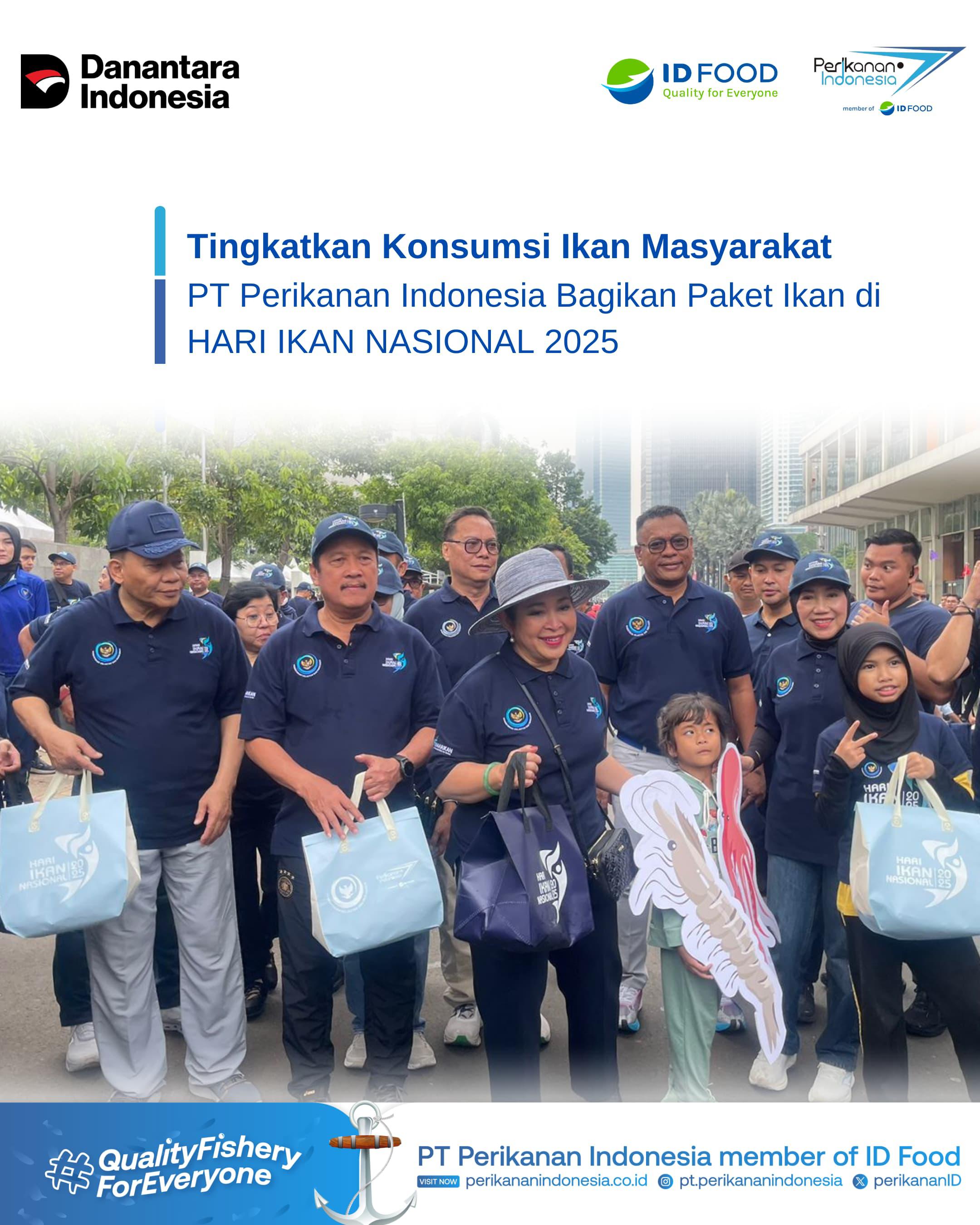 PT Perikanan Indonesia memberikan ikan dengan total 600 paket selama rangkaian acara, Harkannas 2025 yang merupakan bagian dari program Tanggung Jawab Sosial dan Lingkungan. Paket berisi ikan kembung dan udang ini mayoritas diberikan kepada Anak SD yang merupakan Generasi Alpha, serta masyarakat yang terdiri dari Ibu-Ibu yang memiliki balita. *(Gen Alpha: lahir antara 2010-2024).