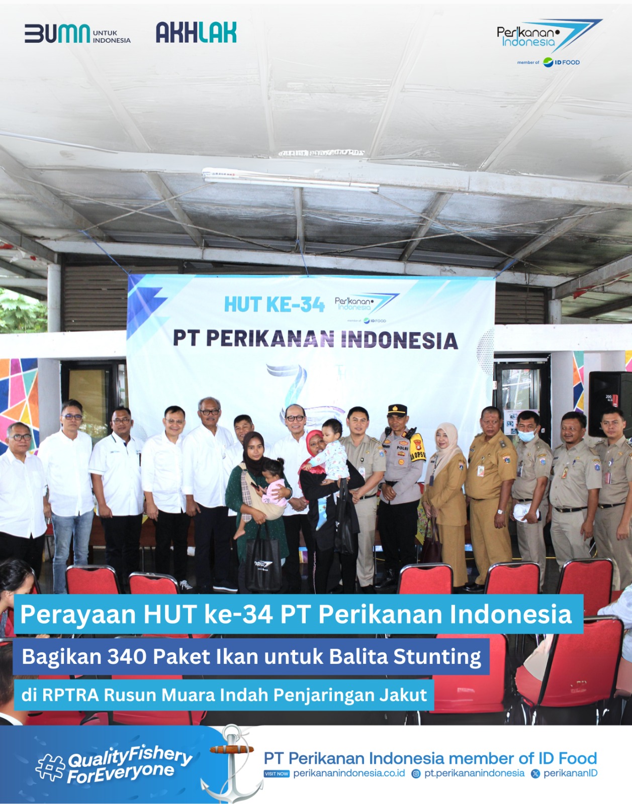 Pembagian paket ikan ini digelar pada saat syukuran perayaan Hari Ulang Tahun ke-34 PT Perikanan Indonesia sekaligus perayaan dua tahun merger BUMN Perikanan yakni PT Perikanan Indonesia dan PT Perikanan Nusantara.