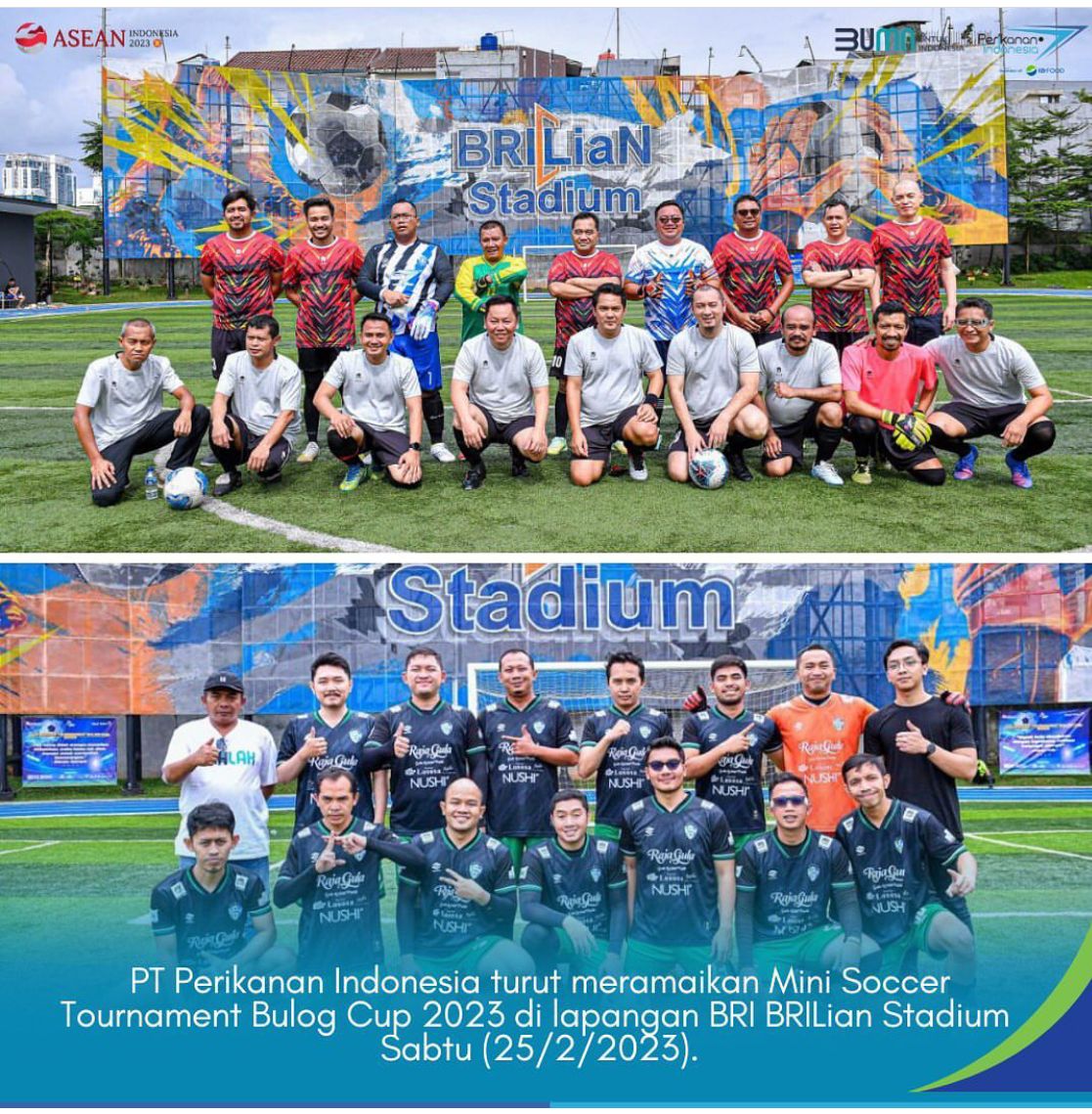 PT Perikanan Indonesia turut meramaikan Mini Soccer Tournament Bulog Cup 2023 di lapangan BRI BRILian Stadium yang diikuti instansi pemerintah dan BUMN, Sabtu (25/2/2023).