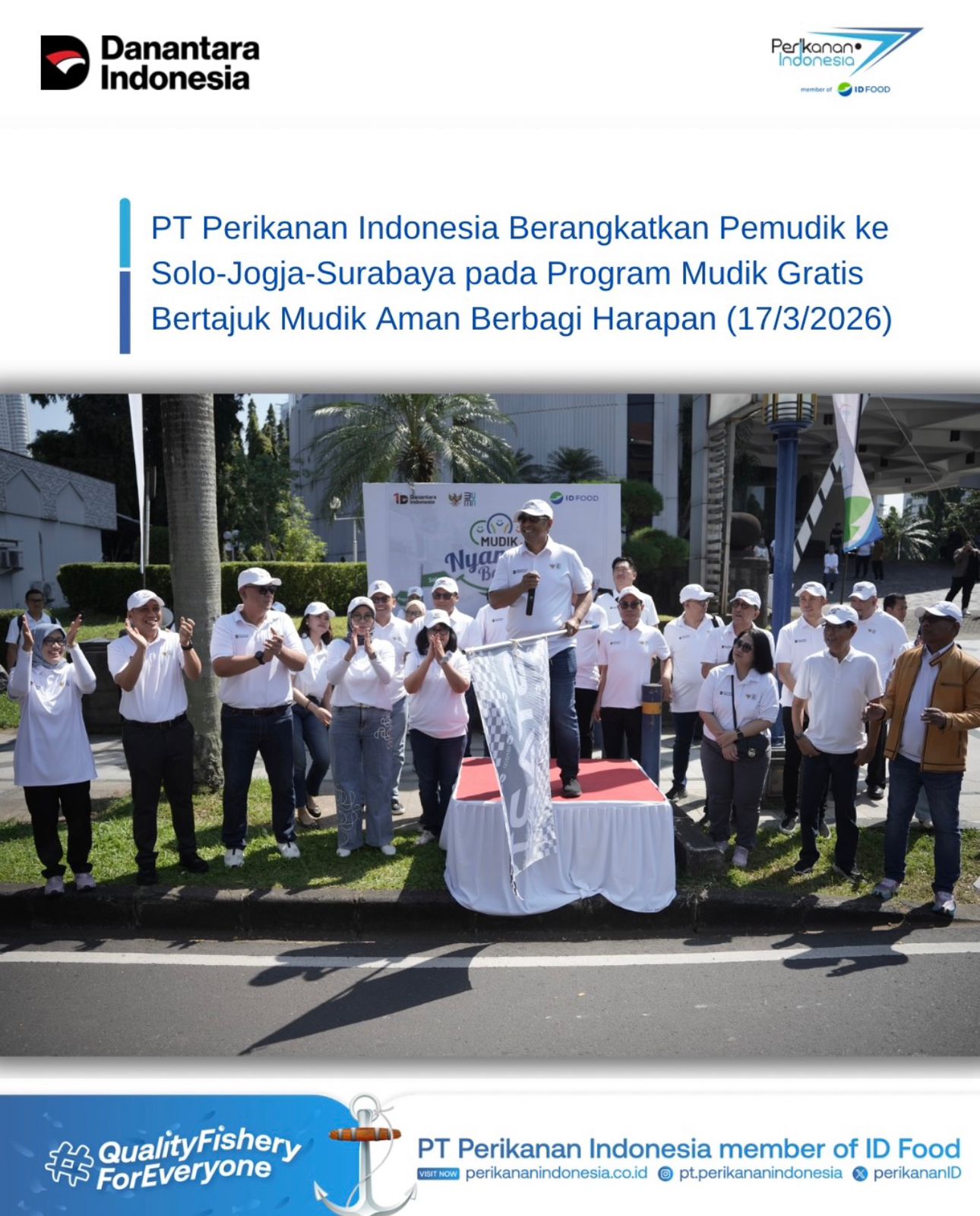 PT Perikanan Indonesia, member of ID FOOD, berpartisipasi dalam mudik gratis 2026 bertajuk Mudik Aman Berbagi Harapan.